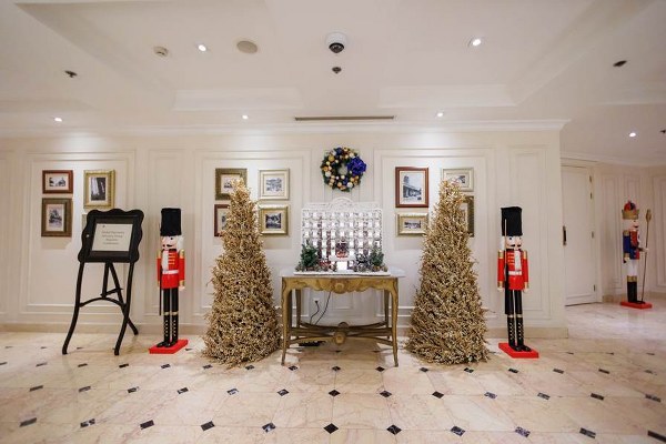Không gian khách sạn trở nên huyền ảo với hàng triệu ánh đèn lung linh, nến và đội quân lính chì gỗ
