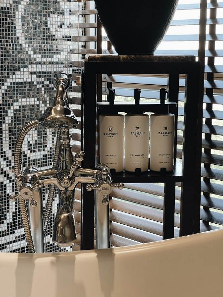 Các sản phẩm cao cấp của thương hiệu Balmain bao gồm dầu gội, dầu xả và sữa tắm với dung tích 400ml và chất liệu tái chế 100% sẽ được lắp đặt cho toàn bộ phòng tắm của khách sạn. Ngoài ra, các sản phẩm thuộc cùng bộ sưu tập của Balmain như kem dưỡng thể, xà phòng, kem dưỡng da tay, mũ tắm, bộ trang điểm, túi vệ sinh, bộ sản phẩm đánh giày, nha khoa và dao cạo râu cũng được cung cấp cho khách lưu trú tại Metropole Hà Nội sử dụng.