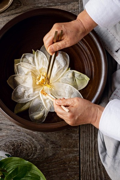 "Khi nghĩ đến việc nấu ăn, tôi thường sẽ làm trống bản thân mình đầu tiên để thấu hiểu bản chất của các nguyên liệu và chia sẻ tâm trí của mình với thiên nhiên", đầu bếp Jeong Kwan chia sẻ.