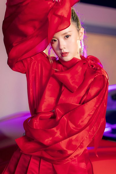 Midu rực rỡ với váy đỏ thiết kế cầu kỳ, lạ mắt