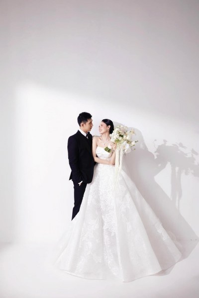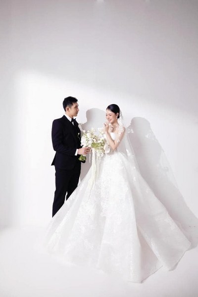 Người đẹp chia sẻ: "Chỉ cần ở cạnh người mình thương, một bức tường trắng cũng trở thành studio cưới đẹp nhất. Một bộ hình đơn giản của hai đứa mình chuẩn bị cho ngày trọng đại 29/6 sắp tới".