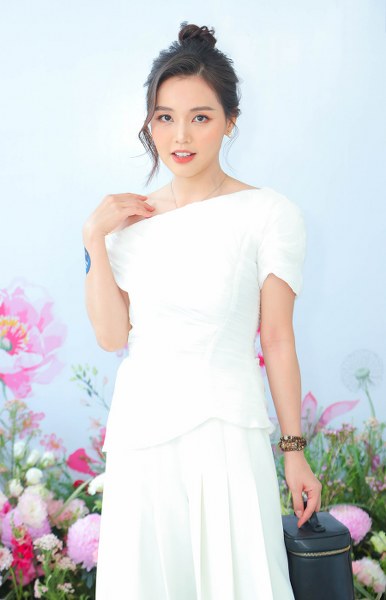 Ca sĩ Linh Phi cũng chọn trang phục tông trắng - kem thanh lịch. Sau khi kết hôn cùng diễn viên Quang Tuấn, Linh Phi lui về chăm sóc gia đình và phát triển công việc kinh doanh.