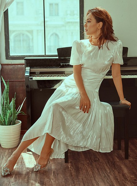Ca sĩ Miko Lan Trinh khoe vẻ gợi cảm ở tuổi 33 với các thiết kế váy dây, trễ vai khi làm mẫu ảnh.