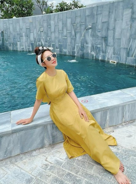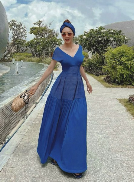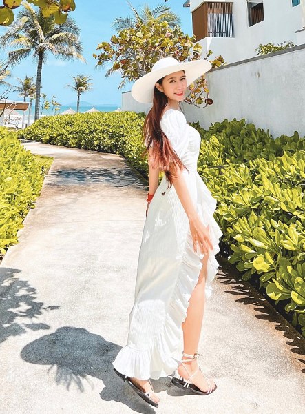 Làn da trắng sứ, vóc dáng thon gọn của \"bà mẹ 4 con\" Minh Hà trong các chuyến du lịch được tôn lên bởi những chiếc váy đầy màu sắc.