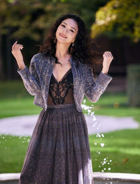 Thiết kế thuộc bộ sưu tập Thu đông 2025. Trang Fashion Models nhận xét Tử Di toát vẻ hoa lệ, lãng mạn. Phần chân váy lấp lánh, lấy cảm hứng sao đêm.