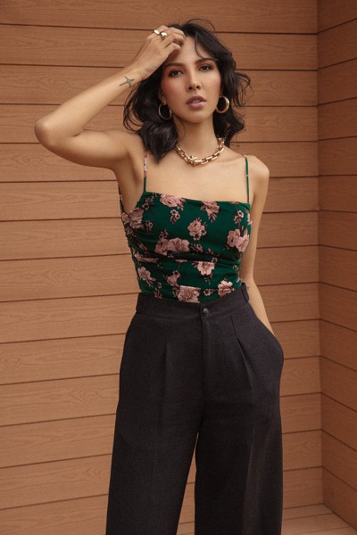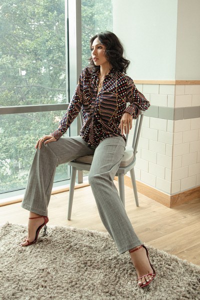 Minh Triệu làm mẫu cho chính những trang phục cô thiết kế dành cho phái đẹp ở mùa thu đông năm nay.