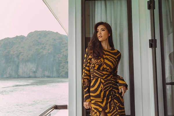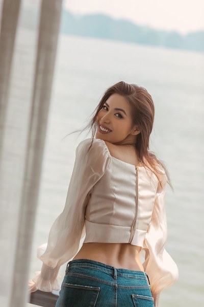 Người đẹp khoe vóc dáng gợi cảm giữa không gian thiên nhiên thoáng đãng trong chuyến công tác mới đây.