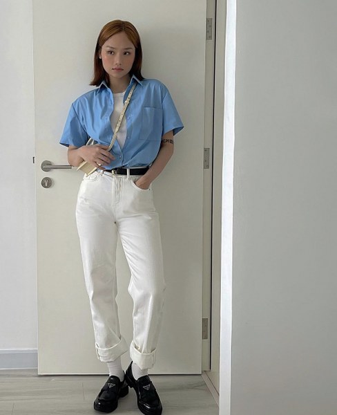 Ngoài cách mix đồ đồng điệu cùng xu hướng, phần tạo dáng và chụp ảnh chỉn chu là yếu tố giúp phong cách mới của Miu Lê thêm cuốn hút.