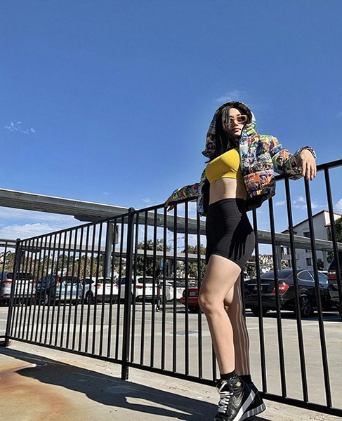 Trang phục năng động, đề cao sự trẻ trung và khoẻ khoắn vẫn được Miu Lê yêu thích. Cô chọn thêm các mẫu áo crop-top thể thao để mix trang phục bắt mắt hơn.