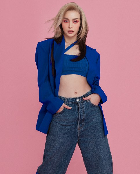 Ca sĩ MLee diện váy ngắn, tạo dáng táo bạo khoe chân dài 110cm.