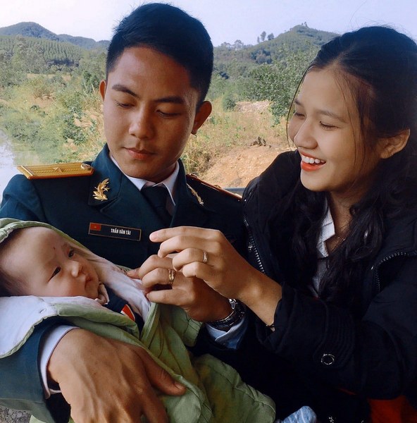 Mái ấm nhỏ của đôi trẻ đã đón chào em bé đầu lòng được 9 tháng tuổi. Ngày vợ sinh Tài chỉ được về thăm vợ con đúng 1 tuần. Nhiều lúc anh chàng cũng muốn được về gần nhưng vì công việc, vì nhiệm vụ, đành phải chấp nhận.