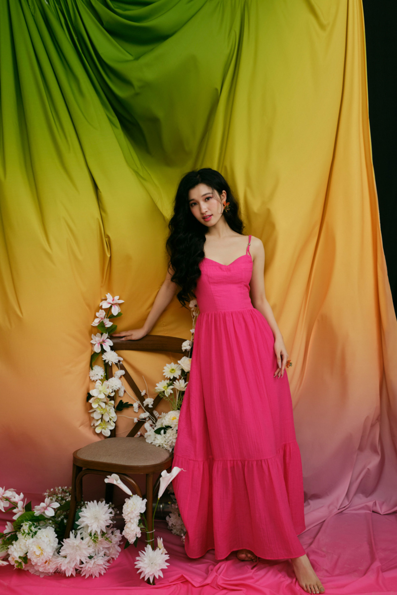 Đầm 2 dây dáng maxi xòe nhẹ. Kiểu dáng 2 dây giúp khoe bờ vai và mang lại nét quyến rũ cho người mặc. Chất liệu lụa Tencel cao cấp mang đến cảm giác dễ chịu, mềm nhẹ trên làn da, kết hợp cùng sắc hồng nổi bật không những tôn da mà còn đem lại nguồn năng lượng tươi mới.