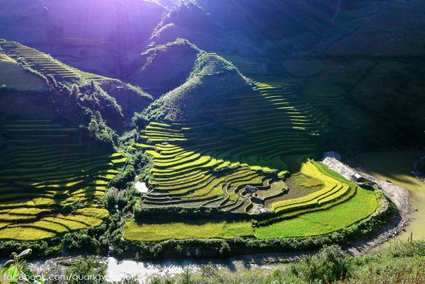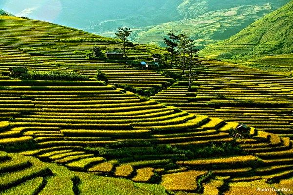 Những thửa ruộng bậc thang vàng óng ánh ở Mù Cang Chải đẹp tựa như một bức tranh là điểm dừng chân thú vị trong cung đường Tây Bắc.