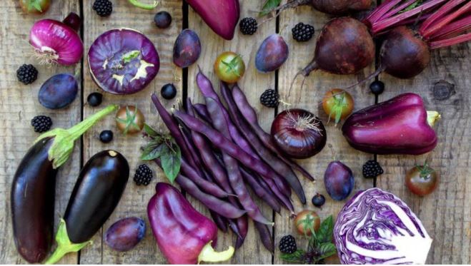 Những thực phẩm có màu tím là do có một thành phần tạo nên màu sắc ấy, đó là Anthocyanidin. Tùy theo hàm lượng chất này mà màu sắc của thực vật trở nên tím nhạt, đậm hay tím đen lại. Ví như đỗ đen giàu nhất hàm lượng này nên màu tím đến thành đen sậm. Những thực phẩm có màu tím nhạt hơn như bắp cải tím, cà tím, cải tím, khoai lang tím, việt quất, nho tím… có rất nhiều flavonoid, polyphenol, ellagic, vitamin, anthocyanidin… giúp chống oxy hóa, ức chế hình thành gốc tự do.