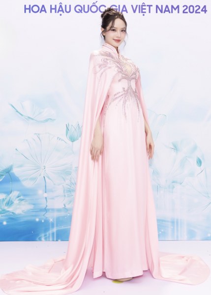Hoa hậu Thanh Thủy tạo dáng với áo dài gắn thêm áo choàng, đính kết phần ngực. Cô đang trau dồi các kỹ năng để tham gia Miss International 2024, diễn ra ở Nhật Bản vào tháng 11. Thanh Thủy nói mong chờ thí sinh tiếp theo của Việt Nam, nối tiếp cô tại cuộc thi nhan sắc quốc tế.