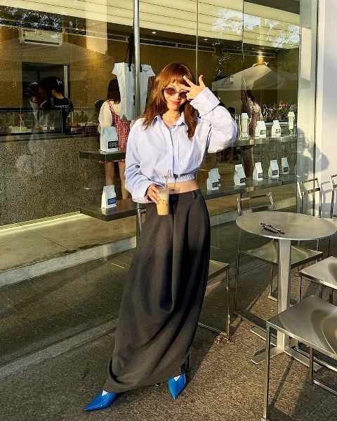 Chân váy midi là một trong những món đồ cơ bản được nhiều chị em yêu thích bởi có thể sử dụng quanh năm. Dáng chữ A suông và xòe nhẹ có tác dụng "kéo dài" chân hiệu quả. Hai năm nay, kiểu váy này được nhiều hãng thời trang phân khúc bình dân liên tục lăng xê. Chị Nguyễn Thị Lan - 40 tuổi, chủ một cửa hàng quần áo tại quận Hoàn Kiếm, Hà Nội - cho biết mặt hàng này luôn bán chạy, "lấy về bao nhiêu cũng hết".
