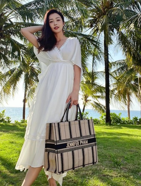 Jennifer Phạm cũng có một chiếc túi tote mang tên cô. Người đẹp thường sử dụng chúng khi đi du lịch.
