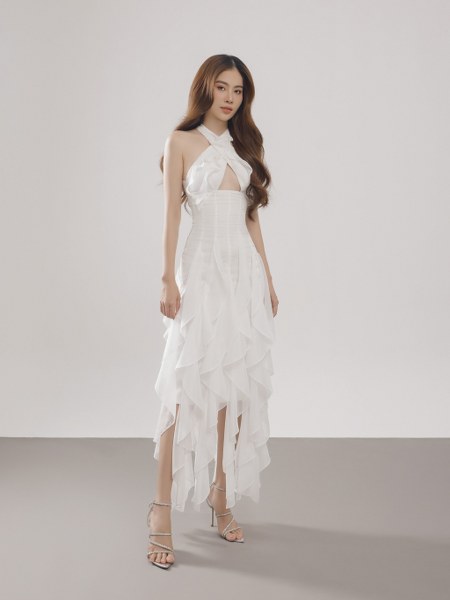 Ngoài ra, vài trang phục cut-out, xẻ tà cá tính trong bộ sưu tập giúp Nam Anh khoe vẻ đẹp hình thể.