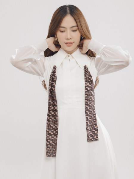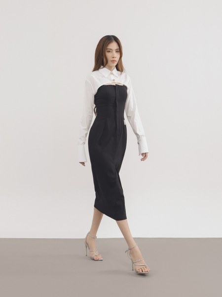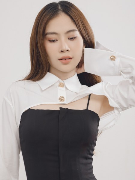 Người đẹp thực hiện loạt ảnh mới trong trang phục chuẩn công sở với hai tông màu trắng - đen quen thuộc.