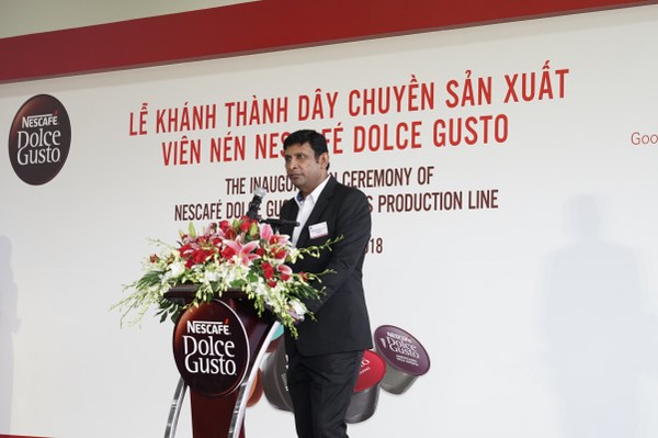 Ông Ganesan Ampalavanar, Tổng Giám đốc Công ty Nestlé Việt Nam phát biểu: "Dây chuyền sản xuất NESCAFÉ Dolce Gusto mới sẽ tạo điều kiện đưa sản phẩm cà phê cao cấp tới nhiều người tiêu dùng Việt Nam hơn nữa đồng thời tiếp cận tới 13 thị trường xuất khẩu trên thế giới. Bên cạnh đó việc khánh thành dây chuyền sản xuất ngày hôm nay một lần nữa khẳng định cam kết của Nestlé mang lạigiá trị và góp phần phát triển ngành công nghiệp cà phê Việt Nam".
