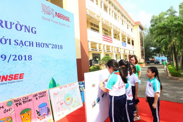Công Ty Nestlé Việt Nam cũng tổ chức các hoạt động tìm hiểu kiến thức về phân loại, xử lý rác thải, bảo vệ môi trường cho các em học sinh như vẽ tranh, rung chuông vàng…