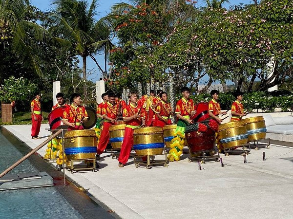 Dàn trống trong tiết mục múa lân chào mừng năm mới tại Azerai Kê Gà Bay