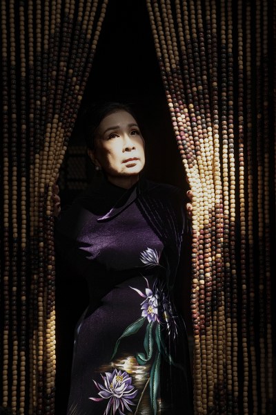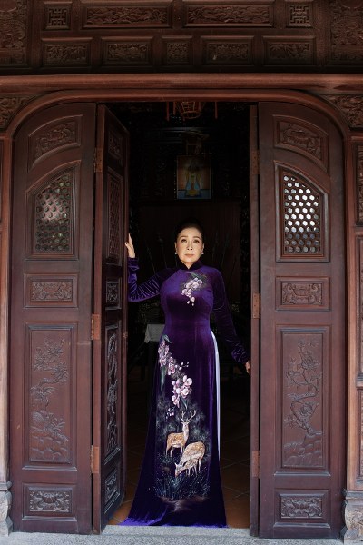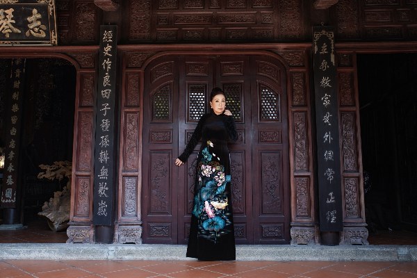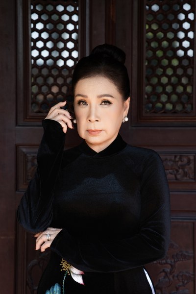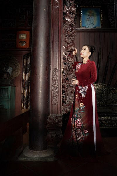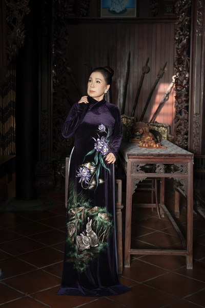 Nghệ sĩ Kim Xuân, 68 tuổi, thể hiện bộ sưu tập áo dài "Hoa xuân" của nhà thiết kế Võ Việt Chung.