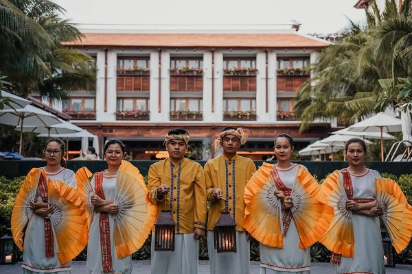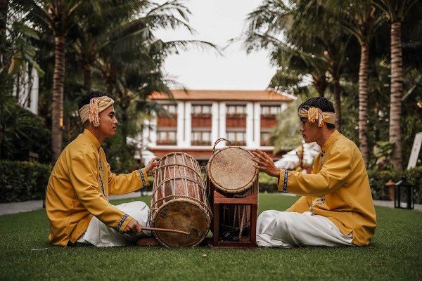 Vào lúc mặt trời lặn mỗi ngày, nhân viên khu nghỉ dưỡng The Anam Mũi Né trong trang phục Chăm tryền thống, dưới ánh nến lung linh, thả bước theo tiếng trống vang vọng từ tiền sảnh qua khu vườn xanh mướt rồi tiến về bãi cỏ trung tâm hướng biển để thực hiện nghi thức tạm biệt mặt trời.