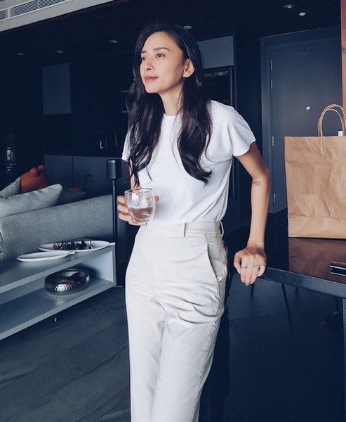 Chỉ cần mặc áo phông trắng trơn đơn giản, \'đả nữ\' màn ảnh Việt - Ngô Thanh Vân - đã đủ có diện mạo thanh lịch, trẻ trung.