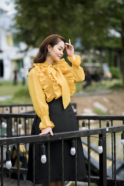 Váy áo kín đáo giúp cô trở nên thanh lịch hơn đồng thời che được các khuyết điểm