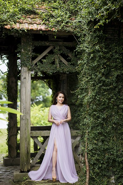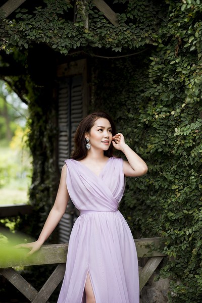 Ca sĩ Nguyễn Ngọc Anh theo đuổi phong cách điệu đà với váy dạ hội xuyên thấu, áo sơ mi và đầm cocktail bèo nhún.