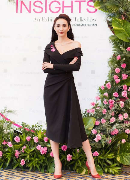 Chọn trang phục gam đen - trắng tương phản, hoa hậu Ngọc Diễm khi thì thanh lịch, lúc lại gợi cảm trong các sự kiện gần đây.