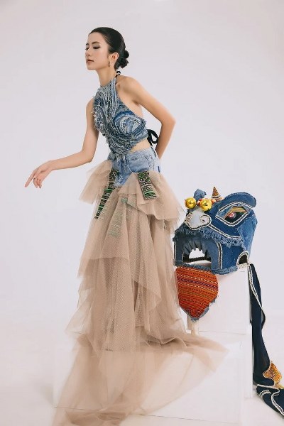 Chất liệu thổ cẩm khi kết hợp với denim mang vẻ đẹp vừa độc đáo, vừa hiện đại.