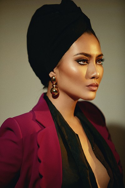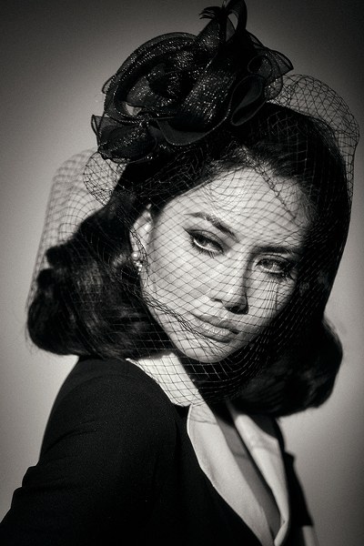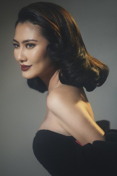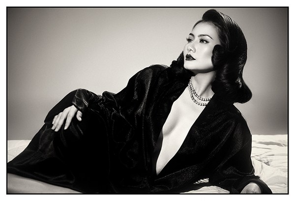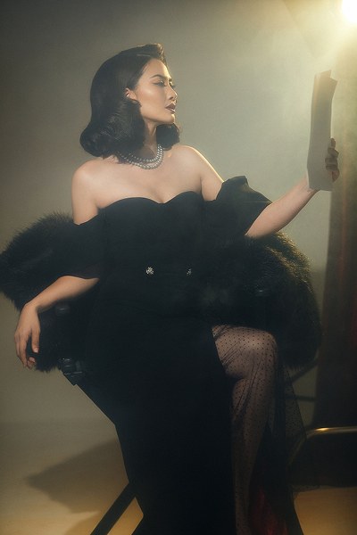 Ngọc Lan diện trang phục đen, tôn nét quyến rũ khi thể hiện hình tượng minh tinh Sophia Loren.
