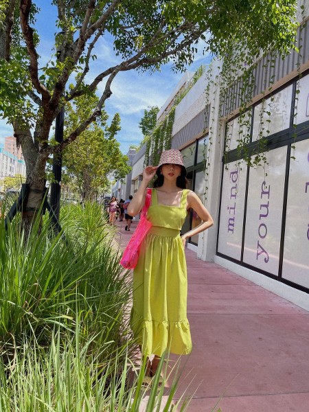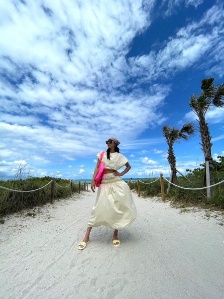Ngọc Quyên dậy từ 4h để trang điểm và làm tóc rồi lần lượt thay các bộ đồ với nhiều phong cách để \"sống ảo\" ở thành phố biển thuộc tiểu bang Florida.