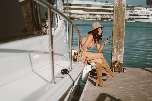 Cựu siêu mẫu Ngọc Thúy diện váy ngắn, khoe hình thể thon thả, quyến rũ khi dạo chơi ở cảng Newport, bang California.