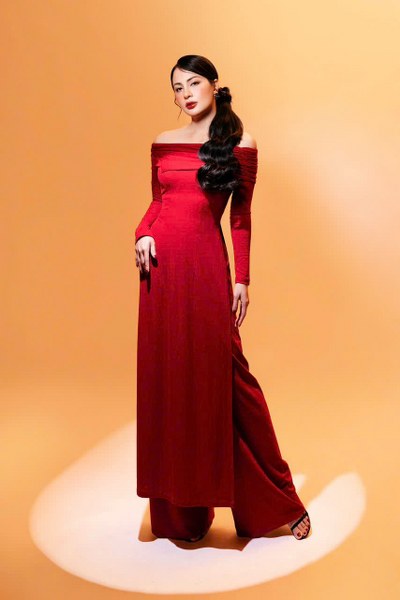 Người đẹp diện áo dài trễ vai đón Tết Ất Tỵ.