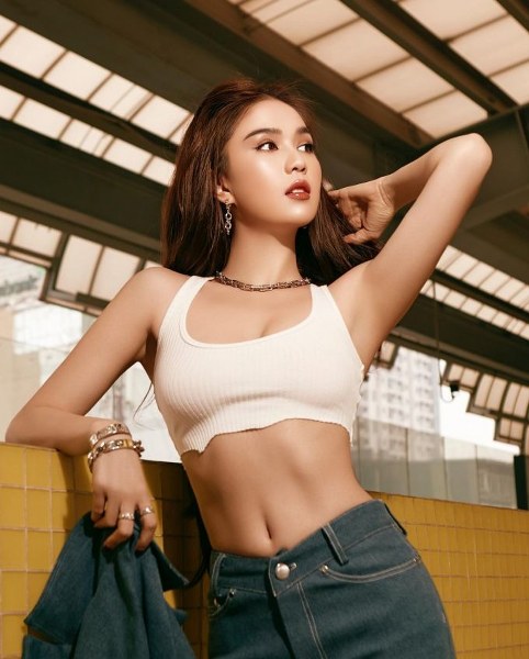 Mỹ nhân 33 tuổi tôn số đo ba vòng với áo crop-top siêu ngắn và quần jeans ôm sát.
