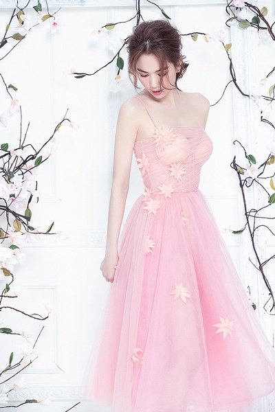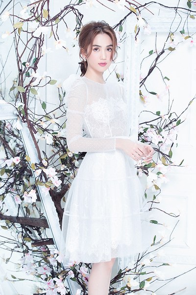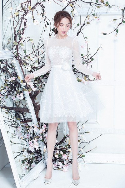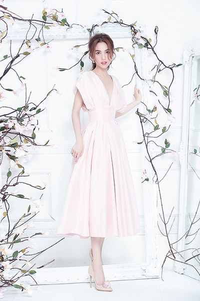Nhà thiết kế Đỗ Long xây dựng hình ảnh thuần khiết, sang trọng cho Ngọc Trinh trong bộ ảnh giới thiệu các mẫu váy đi tiệc mùa hè.