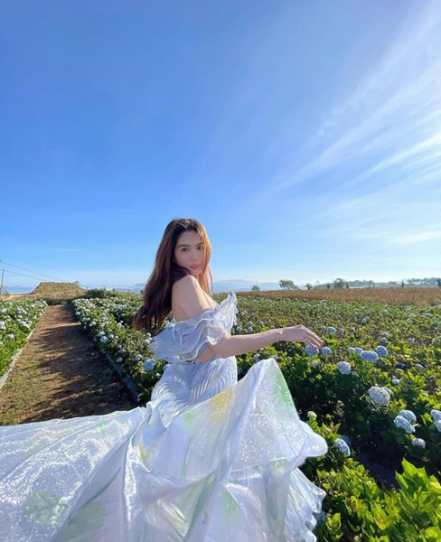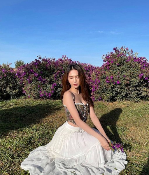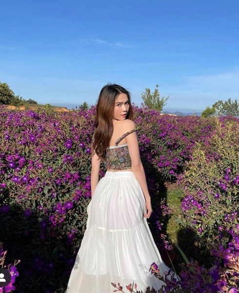 Khi đi du lịch, ngoài các kiểu nội y sexy, Ngọc Trinh còn chuộng những mẫu váy điệu đà theo style tiểu thư, công chúa.