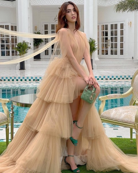 Tuy tăng cân đôi chút, Ngọc Trinh tự tin diện váy ôm, khoe đường cong gợi cảm trong khuôn viên biệt thự triệu USD của cô, sáng 22/8.