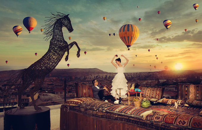 Nữ hoàng nội y\' thích thú nhảy múa trong khung cảnh bình minh tuyệt đẹp ở Cappadocia - kỳ quan nổi tiếng thế giới.