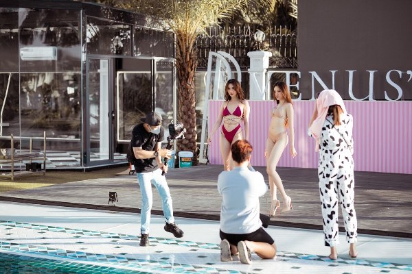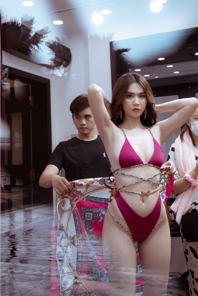Ngọc Trinh được các cộng sự chăm sóc chu đáo trong buổi chụp ảnh