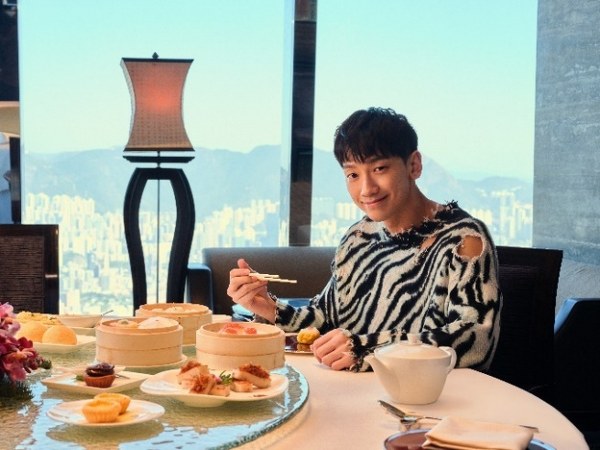 Điểm đến đầu tiên của chuyến đi, Rain thưởng thức món dimsum một cách ngon lành cùng với quang cảnh ngoạn mục của Hồng Kông tại một nhà hàng Quảng Đông đạt sao Michelin