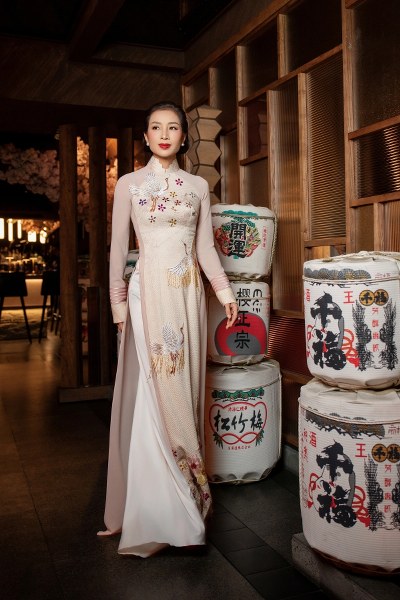 Người đẹp thể hiện 12 mẫu áo dài kết hợp chất liệu chirimen - lụa truyền thống cao cấp của Nhật Bản với lãnh Mỹ A.