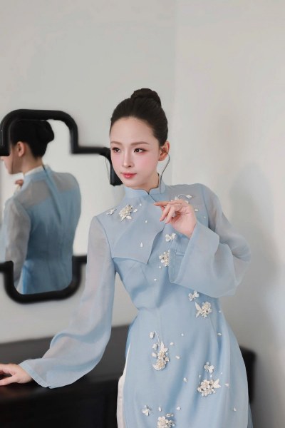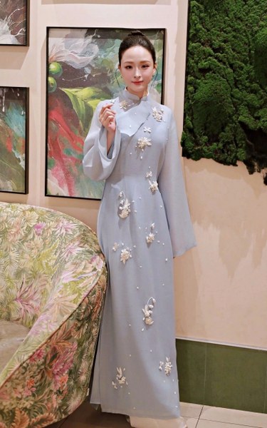 Người đẹp Trương Hồ Phương Nga thường chọn áo dài lụa, đính họa tiết hoa khi dự sự kiện, livestream bán hàng.