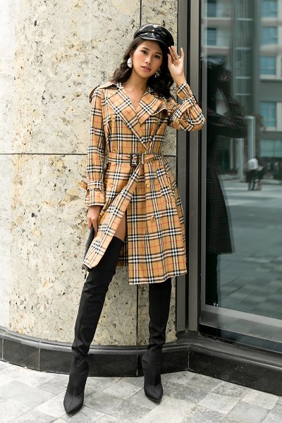 Người đẹp 23 tuổi lựa chọn những mẫu trang phục tối giản như trench coat, jumpsuit... phối cùng mũ da chất liệu vinyl, vòng choker.
