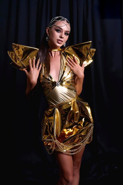 Người mẫu cao 1,73 m, số đo ba vòng lần lượt là 81-65-94 cm. Cô yêu thích trang phục cắt xẻ phần hông, đùi trên nền chất liệu voan, xuyên thấu.