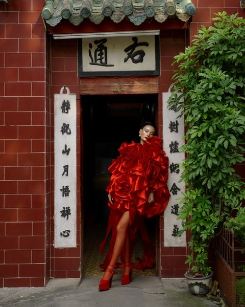 Đỗ Mạnh Cường và nàng thơ Lê Thúy thực hiện bộ ảnh thời trang hoài cổ tại những địa điểm xưa cũ gắn liền với TPHCM, trong đó có Khánh Vân Nam Viện - Đạo quán lớn nhất của người Hoa. Trang phục theo phong cách phương Tây hiện đại đặt trong bối cảnh xưa tạo ra sự tương phản và thu hút.