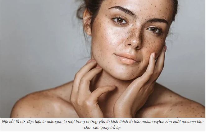 Nội tiết tố nữ, đặc biệt là estrogen là một trong những yếu tố kích thích tế bào melanocytes sản xuất melanin làm cho nám quay trở lại.